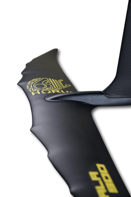 The Kala foil is made of UHM carbon with a T6 aluminum fuselage.